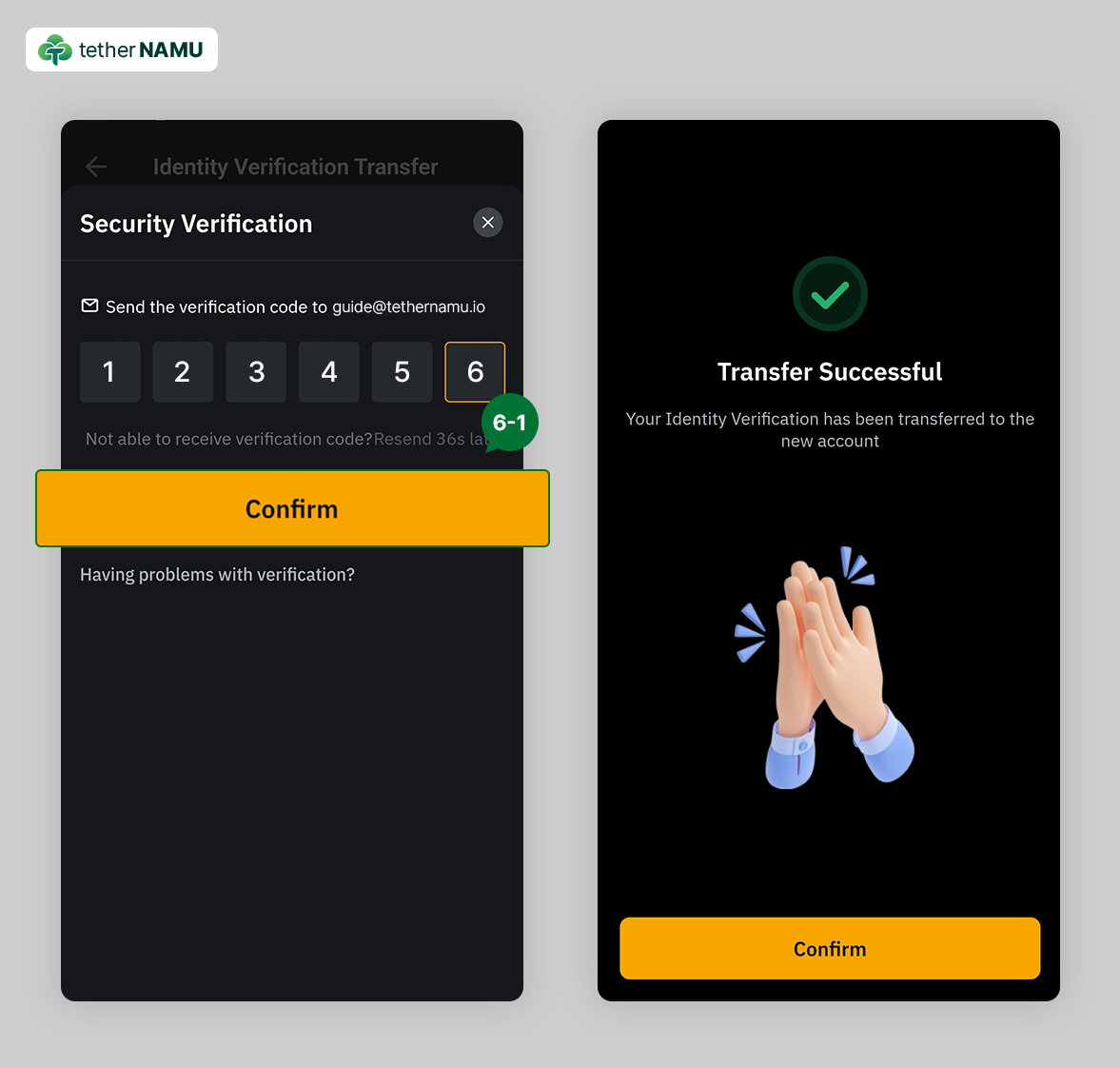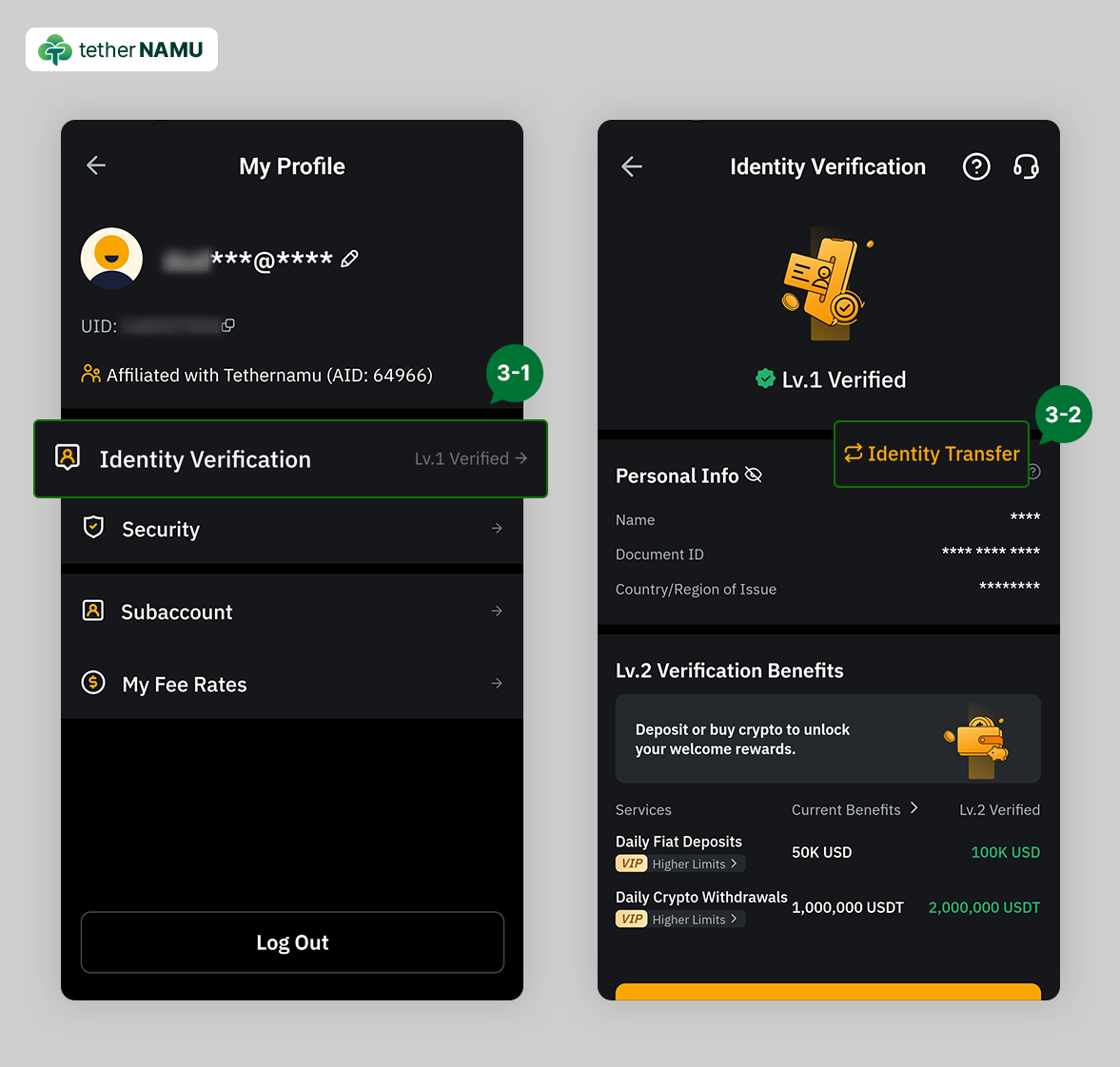 3. Identity Verification을 클릭 후, 다음 페이지에서 Identity Transfer를 클릭해 주세요.