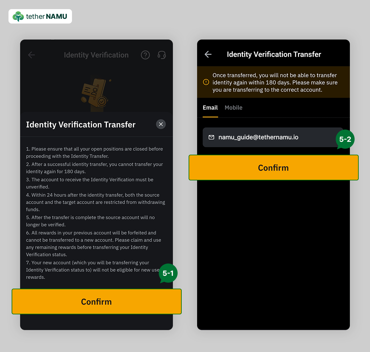 3. Identity Verification을 클릭 후, 다음 페이지에서 Identity Transfer를 클릭해 주세요.