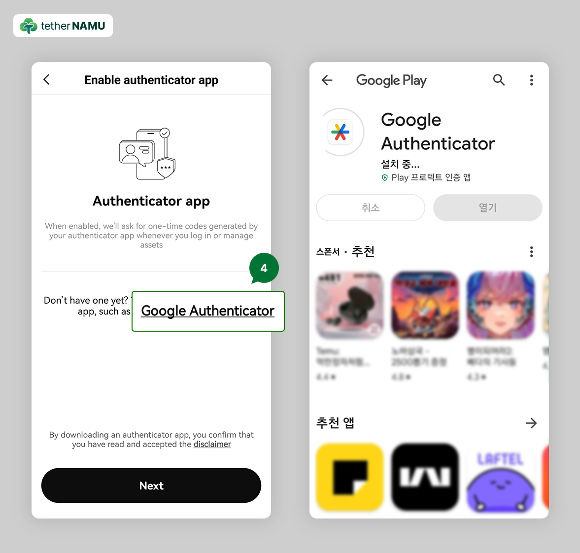 4. Google Authenticator를 클릭하여 구글 인증기 앱을 설치해 주세요.