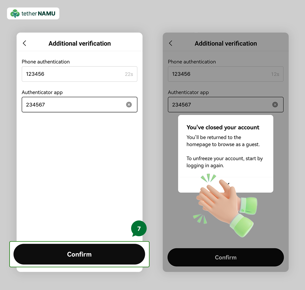 6. Continue를 클릭 후, Close Account를 클릭해 주세요.