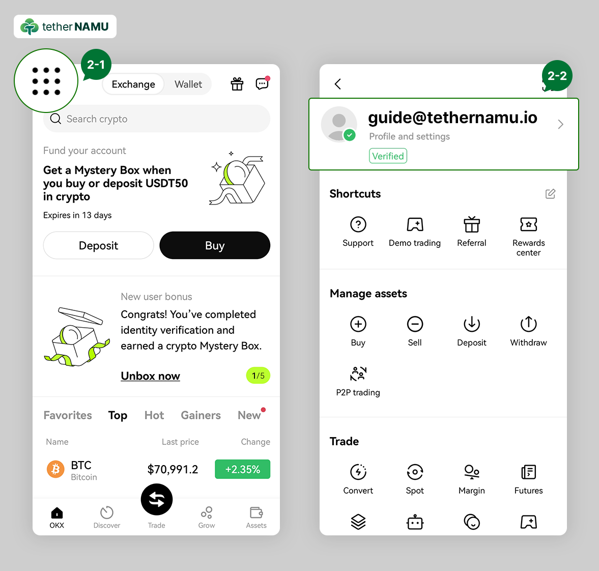 1. OKX 어플에 기존 KYC가 인증되어 있는 계정을 로그인해주세요.