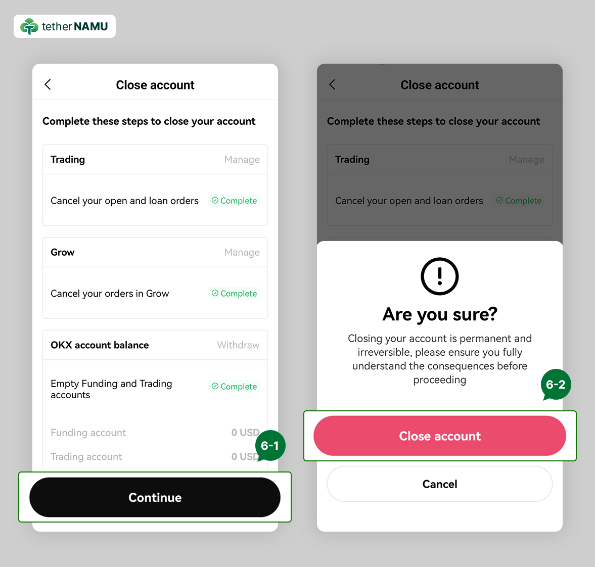 6. Continue를 클릭 후, Close Account를 클릭해 주세요.