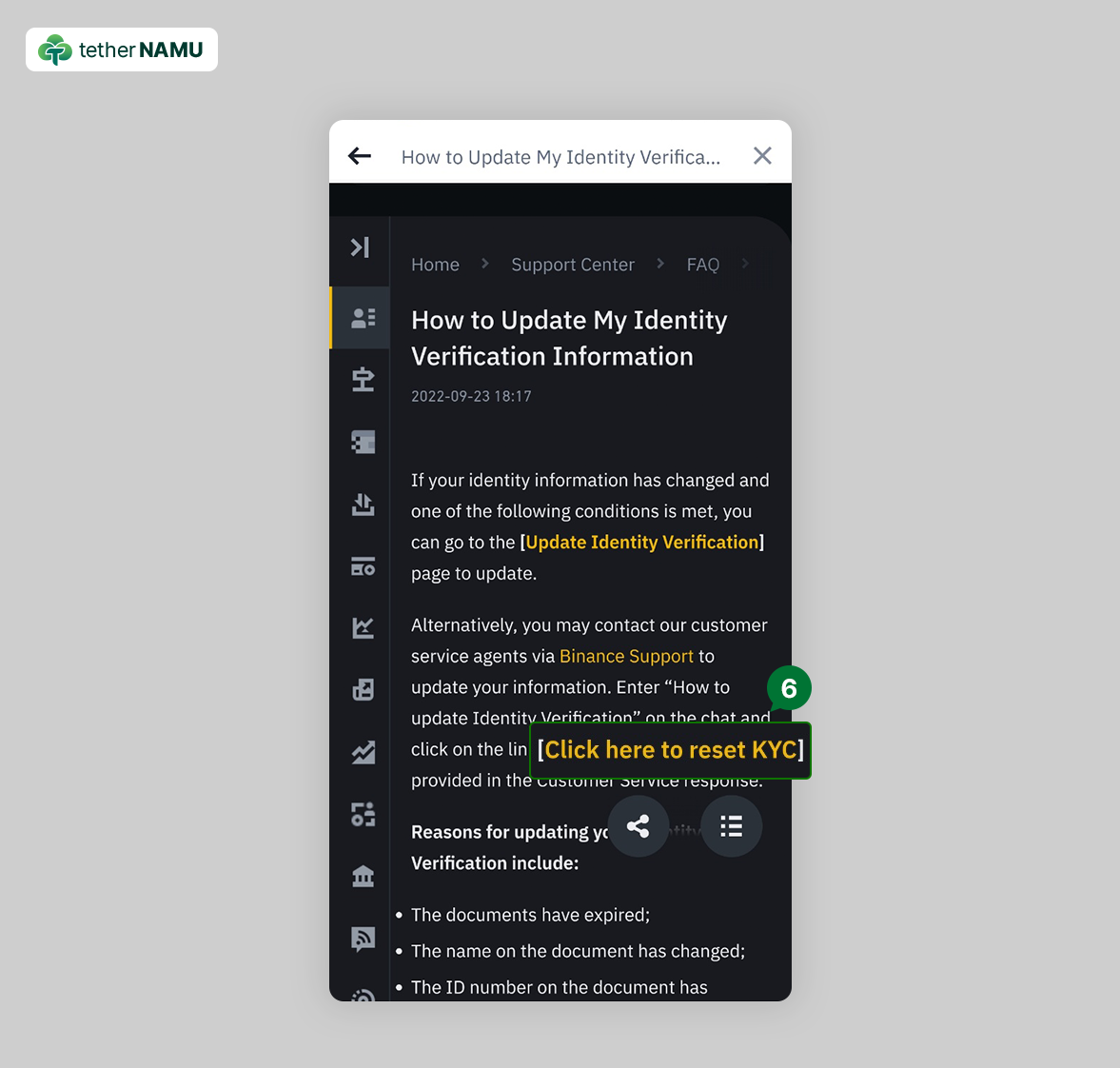6. Click here to reset KYC를 클릭해 주세요.