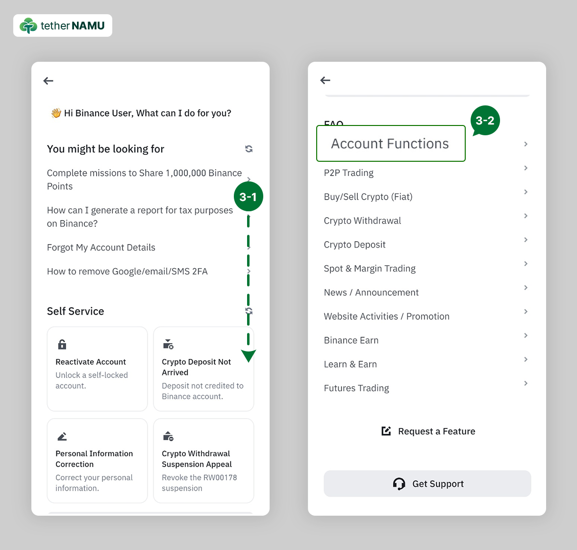 2. 로그인 후 메인 화면에서 우측 상단, 헤드셋 아이콘을 클릭해 주세요.3. 아래로 스크롤하여 FAQ 메뉴, Account Functions 를 클릭해 주세요.