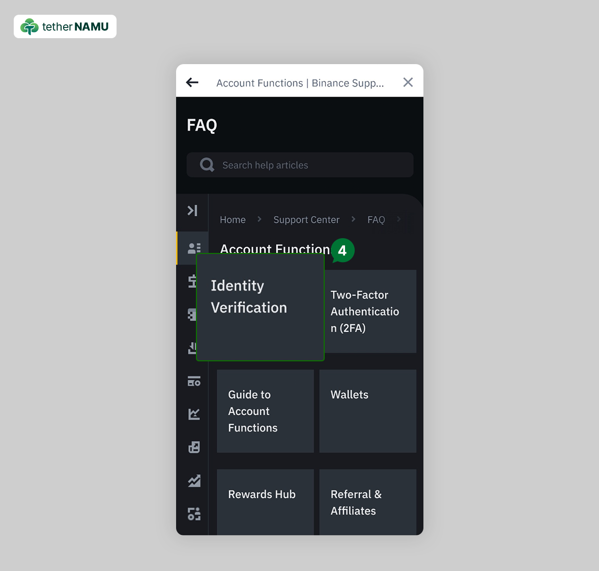 2. 로그인 후 메인 화면에서 우측 상단, 헤드셋 아이콘을 클릭해 주세요.3. 아래로 스크롤하여 FAQ 메뉴, Account Functions 를 클릭해 주세요.