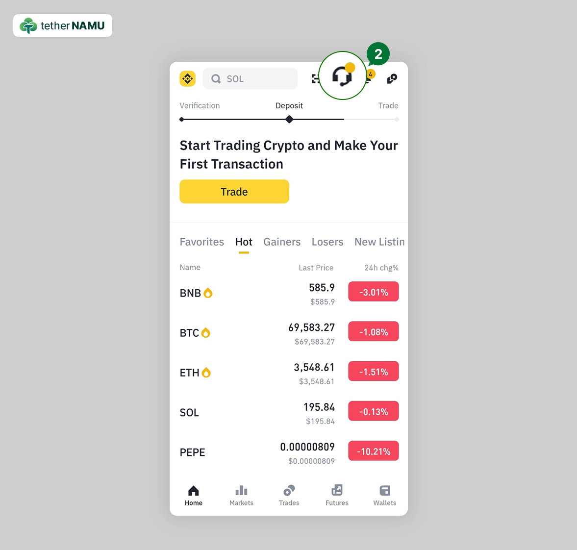 KYC 인증을 마친 바이낸스 계정이 있지만, 계정 내에 자산이 없다면 가이드 중 ①,②는 생략이 가능해요!